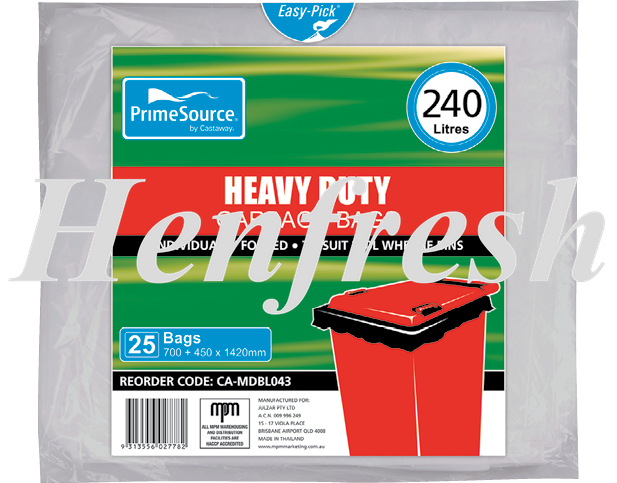 PrimeSource® 240L Heavy Duty Wheelie Bin Bags 200