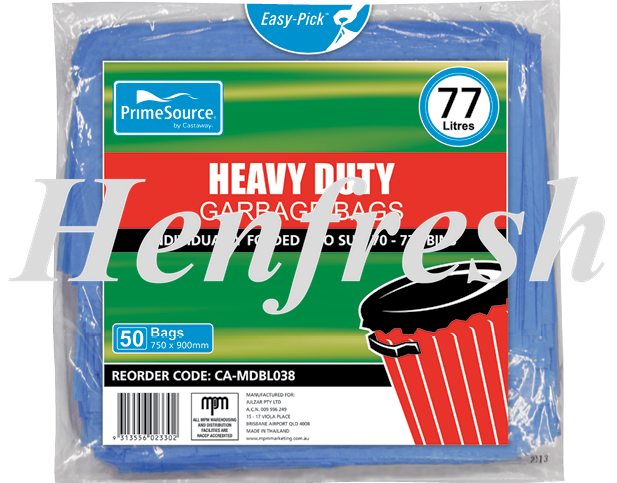 CA PrimeSource® 77L H/Duty Blue Garbage Bags 250