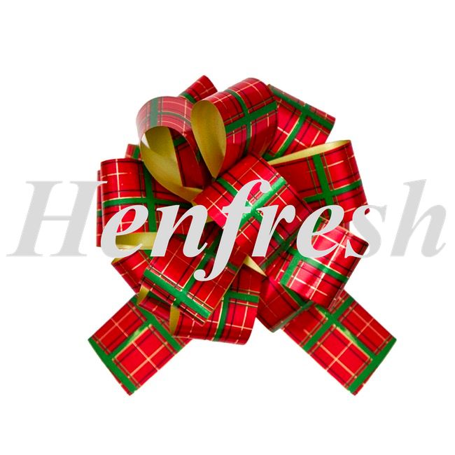 KC Ribbon Pull Bow Pom Pom Tartan 5pk